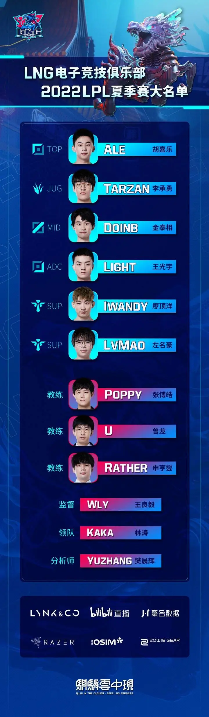 【LNG英雄联盟战队2022LPL夏季赛大名单】