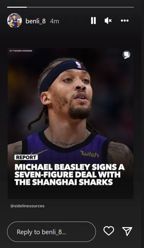 06月06日讯 今日,中国球员李弘权更新Instagram账号,晒迈克尔-比斯利签约上海男篮报道。