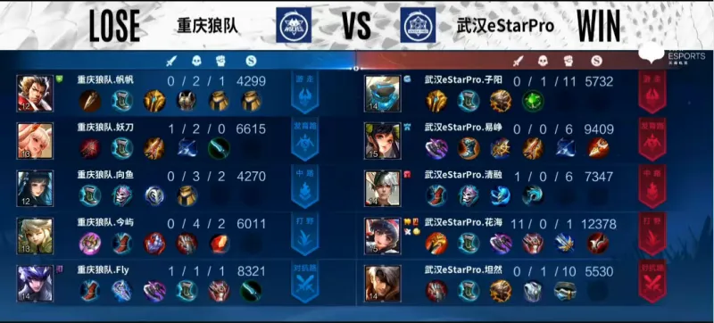 Game2:蓝色方重庆狼队 红色方武汉eStarPro