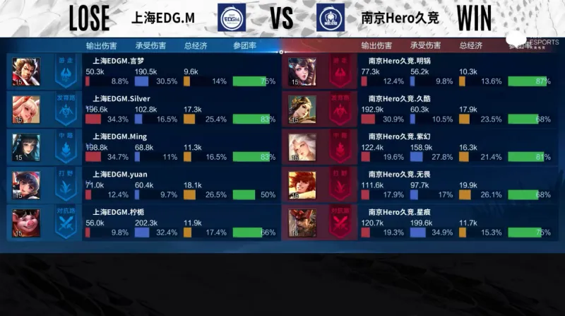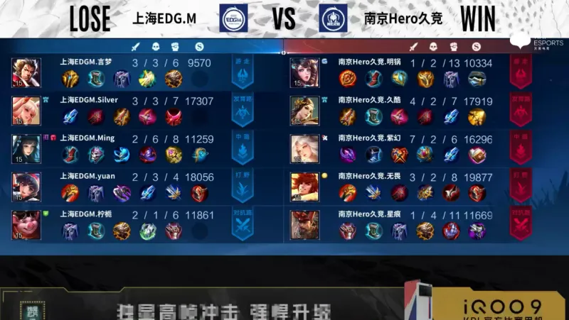 Game 2:蓝色方南京Hero,红色方上海EDGM