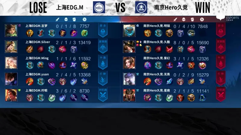 Game 3:蓝色方上海EDGM,红色方南京Hero