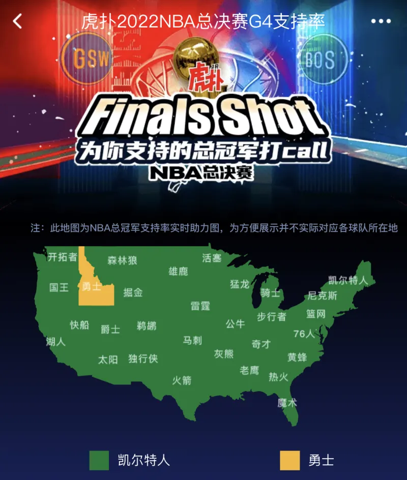 06月10日讯 2022NBA总决赛地图支持率活动正在进行中,昨天总决赛G3战罢后,目前正在进行的是2022NBA总决赛G4支持率。