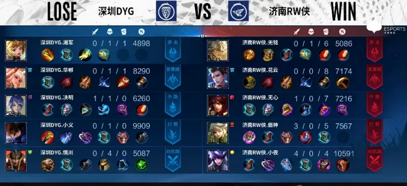 Game1:济南RW侠蓝色方,深圳DYG红色方