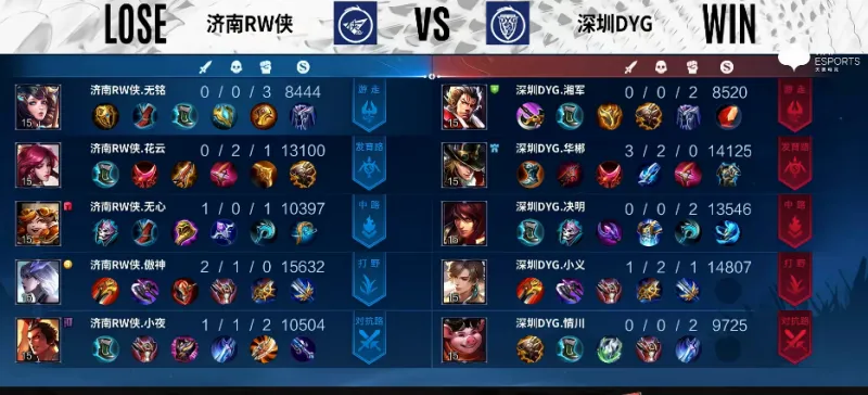 Game2:深圳DYG蓝色方,济南RW侠红色方