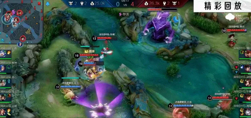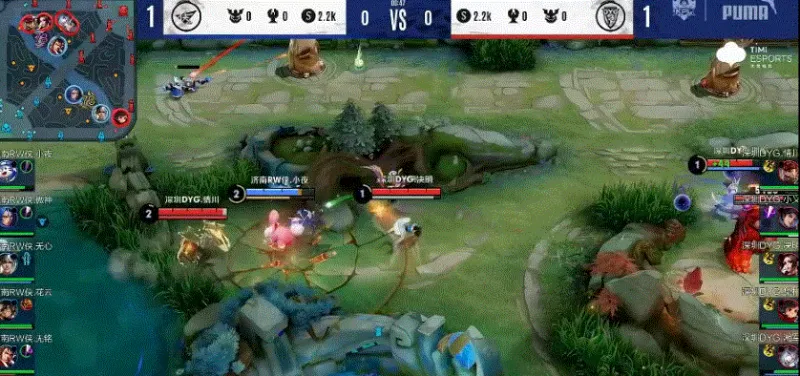 9分20秒,DYG多人入侵RW侠野区顺势打出一波零换三