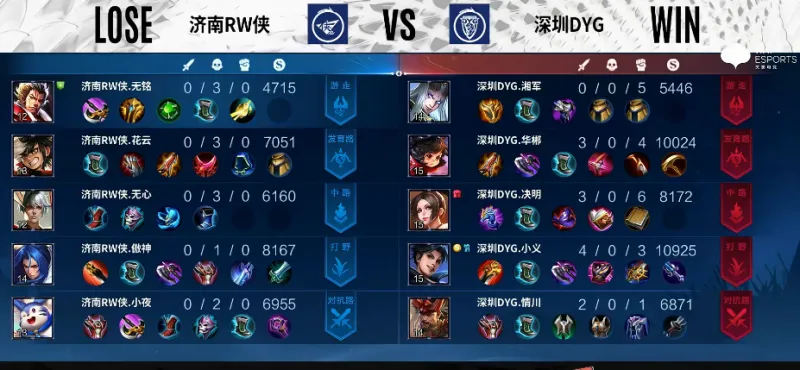 Game4:深圳DYG蓝色方,济南RW侠红色方