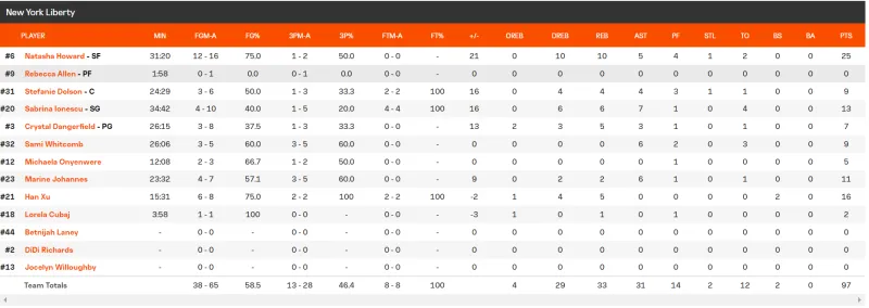 06月11日讯 北京时间今日,WNBA常规赛继续进行,纽约自由人97-83印第安纳狂热。