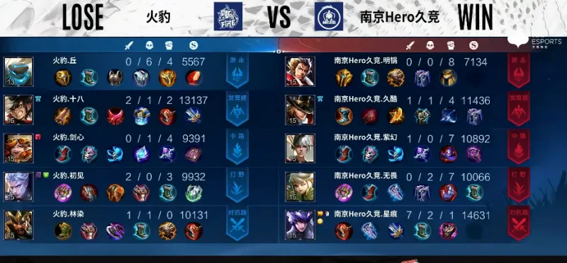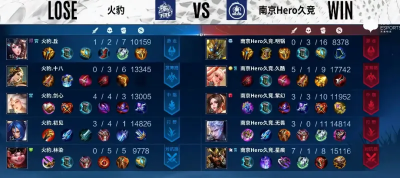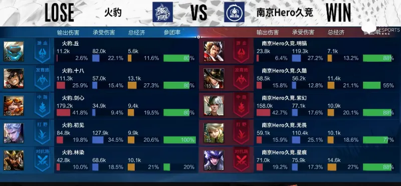 Game1:火豹蓝色方,南京Hero久竞红色方