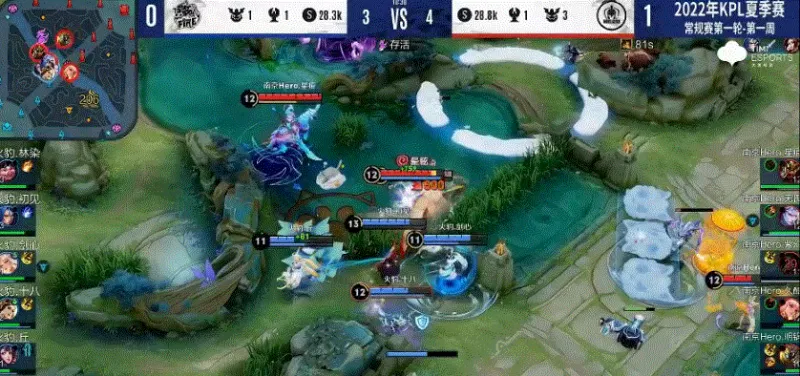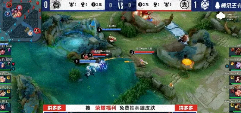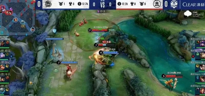 4分26秒,双方中路河道爆发激烈团战,Hero成功打出零换二