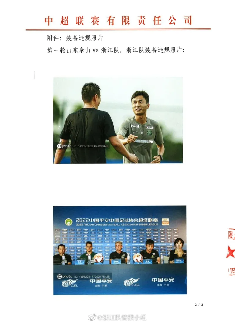06月12日讯 据博主“浙江队情报小组”的消息,近日,中超公司方面向浙江队发出了一份通告,表示由于浙江队穿戴印有广告的训练服,从而进行通报批评。