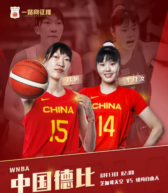 “WNBA中国德比来了!6月13日凌晨,中国女篮双姝韩旭、李月汝将在WNBA Commissioner’s Cup中首次相遇,两位中国姑娘的对阵会碰撞出什么样的火花?大家对WNBA中国德比有什么期待?”中国篮球之队官方微博写道。