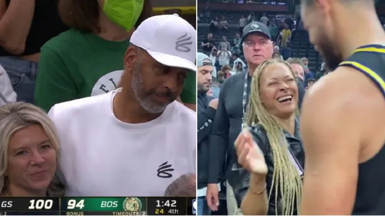 06月12日讯 昨日的NBA总决赛第四场当中,库里的亲生父母,在去年夏天离异的戴尔-库里和索尼娅-库里均带着自己的新欢亮相TD北岸花园球馆,观战库里的总决赛比赛,也引发了各大媒体的广泛关注。