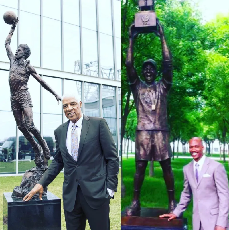 06月14日讯 北控男篮主教练马布里更新社媒,晒出自己铜像和NBA名宿“J博士”雕像的照片。