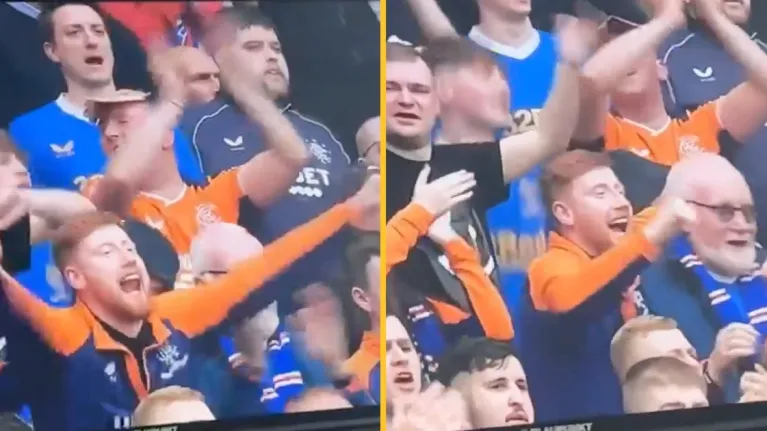不过实际上他跑到了苏格兰格拉斯哥,在汉普顿公园球场见证了流浪者队在苏格兰足总杯决赛中取胜并且捧起今年唯一一座奖杯的时刻。由于这场比赛有5万名球迷入场,这名男子认为自己不会被摄像机拍到。