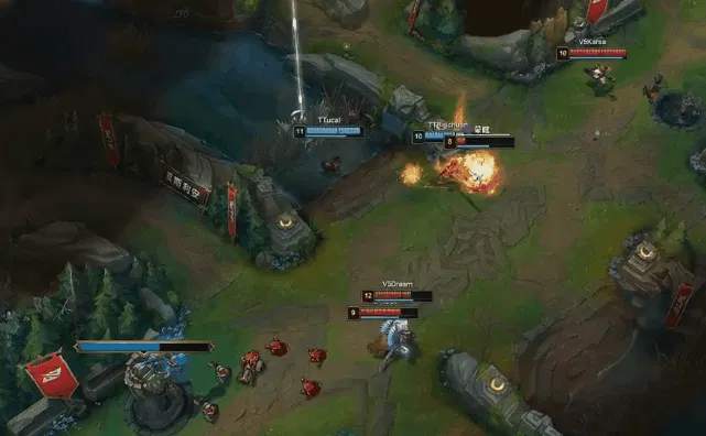 22分钟,下路双方长时间拉锯战后打出上单互换,V5收下听牌龙。