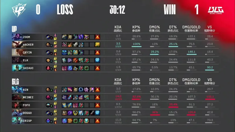 06月16日讯 GAME1:蓝色方UP,红色方BLG