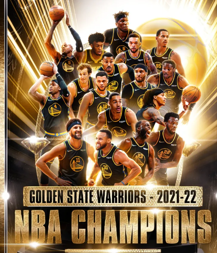 2021-22赛季NBA季后赛,勇士首轮总比分4-1淘汰掘金、西部半决赛4-2淘汰灰熊、西部决赛4-1淘汰独行侠、总决赛4-2击败凯尔特人夺冠。