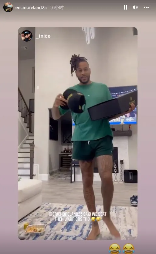 在莫兰德的社媒上,他就转发了朋友拍摄的他拿出2019年NBA总冠军礼盒的视频,视频中写道:“莫兰德说我们曾击败勇士。”