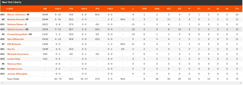 06月20日讯 北京时间今日,WNBA常规赛继续进行,纽约自由人72-81不敌西雅图风暴。