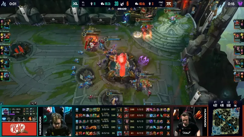 Nukeduck:事实上我都快忘了这点了(笑)。是的,一开始我们确实输了很对比赛,队伍一开始的阵容打的并没有那么好,所以我们不得不做出调整,这也是为什么我们开局打得不好,但我觉得我开局打的也同样不好。现在我觉得我们正打得越来越好。我们和Mikyx磨合了一整个赛季,现在我们可以从赛季开始就和Mikyx一起比赛,而不必在赛季中期做什么调整。