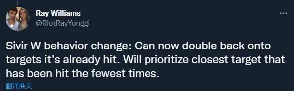 对于W技能,设计师表示现在希维尔的W技能可多次弹射到同一目标上,但W技能会优先弹射到被弹射次数最少的目标上