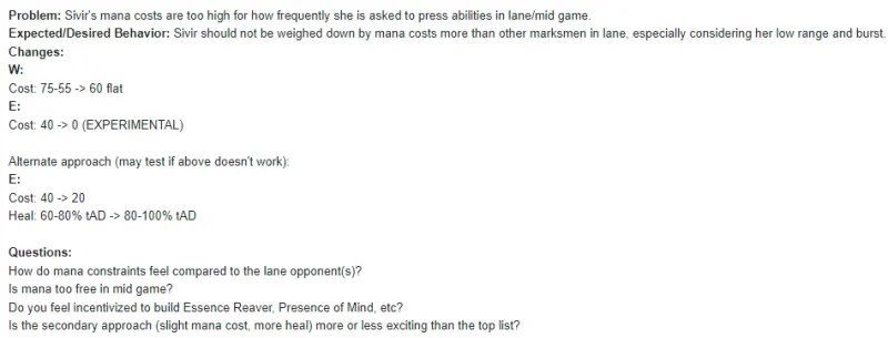 改动目标:相比其他ADC,希维尔不该被蓝耗问题困扰,尤其是考虑到她手短且爆发不高的情况下。