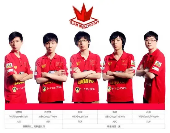 下图为WE.A战队2014LPL夏季赛阵容大名单