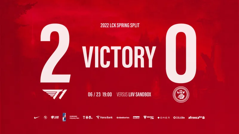 06月23日讯 T1已2比0战胜LSB,成功延续LCK23连胜(2022LCK春季赛常规赛18连胜,季后赛两连胜)。追平2015SKT春季赛-春季赛季后赛-夏季赛的23连胜纪录。