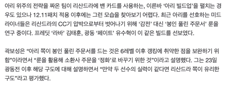 最近偏好阿狸的中单选手,为了减轻冰女控制技能的压力,不带电刑,而是带启封秘籍,BRO.Lava、KDF.Fate选手都启用了这样的符文。