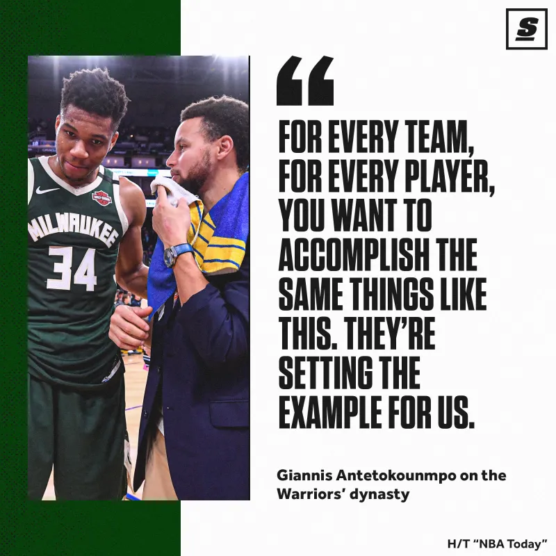 阿德托昆博说:“对于每支球队,每名球员来说,你都想完成像勇士这样的壮举,他们为所有人树立了榜样。”