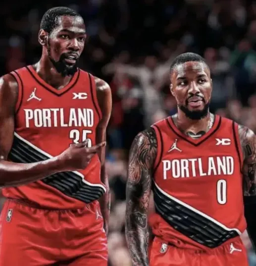 06月26日讯 根据此前报道,利拉德在社交媒体晒出了一张PS过的他和凯文-杜兰特的合照,照片里的杜兰特穿着开拓者的球衣。
