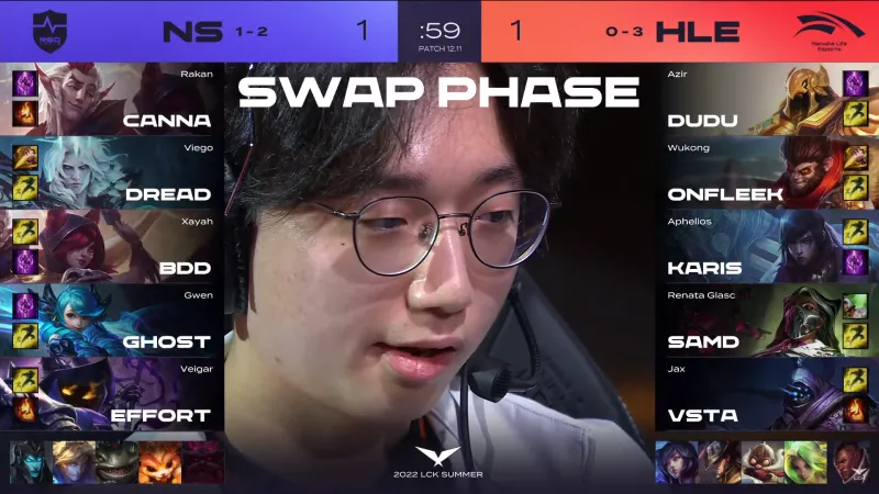 HLE选用:Dudu贾克斯、Onfleek猴子、Karis沙皇、SamD厄斐琉斯、vsta烈娜塔