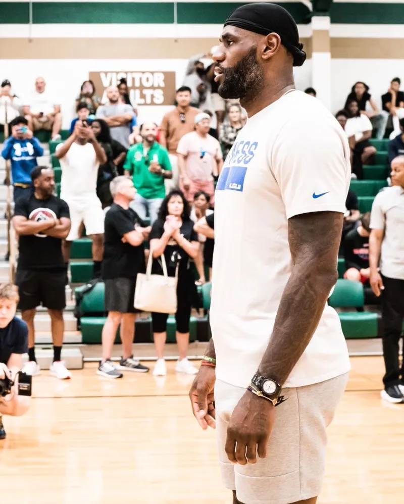 此外,詹姆斯昨日还转发了他去年夏休期在高中母校观看两个儿子参加The Battle主办比赛的组图。