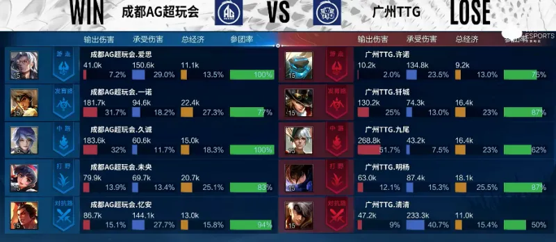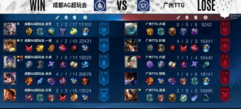 Game2:成都AG超玩会蓝色方,广州TTG红色方