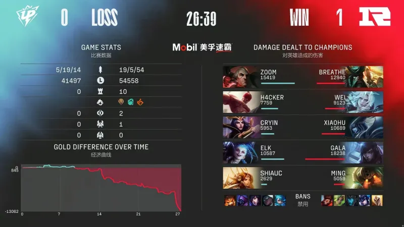 25分钟,大龙团,厄斐琉斯狂风向前斩获五杀RNG一波结束比赛。