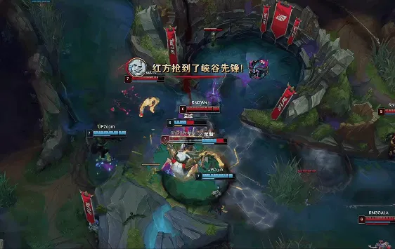 8分钟,佛耶戈抢到峡谷先锋,RNG打出1换2。