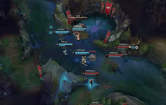 20分钟,大龙处团战,UP集火先秒佛耶戈,厄斐琉斯不断输出,RNG打出2换4。