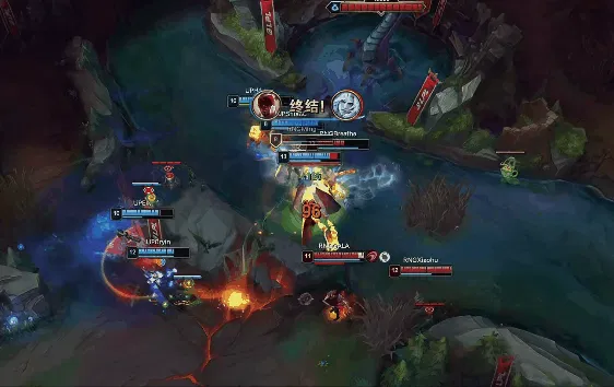 13分钟,下路团战,泰坦钩中盲僧后大招击飞3人,RNG打出0换2后推掉高地塔。