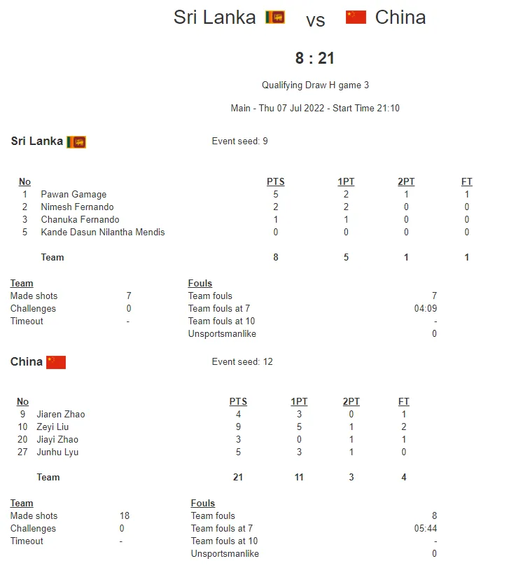 07月07日讯 北京时间今日,2022三人篮球亚洲杯资格赛,中国三人男队在第二场比赛以21-8战胜斯里兰卡,两连胜晋级正赛小组赛。