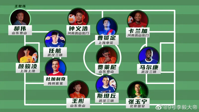 07月13日讯 前国脚李毅评选出中超第一阶段的最佳阵容,张玉宁&马尔康、卡兰加搭档锋线。