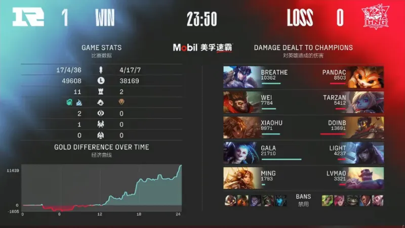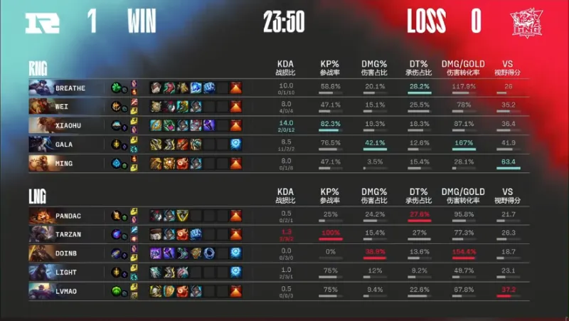 23分钟:RNG推上高地强开团打出团灭一波结束比赛