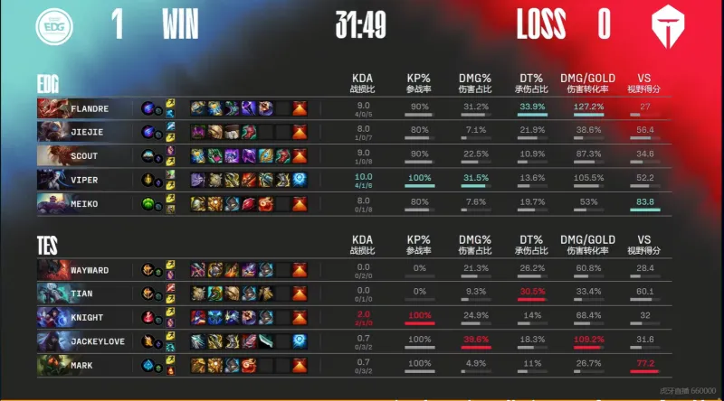 Game1:蓝色方:EDG,红色方:TES
