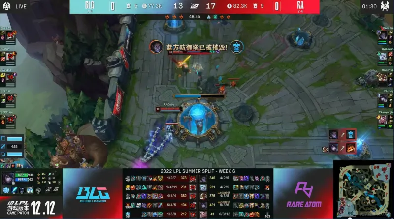 Game1:蓝色方:BLG,红色方:RA