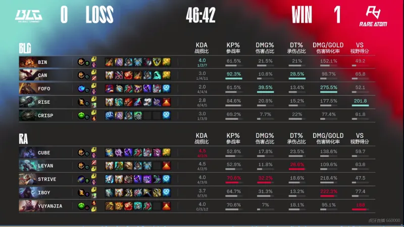 BLG选用:Bin纳尔、can盲僧、FoFo维克托、Rise赛娜、Crisp塔姆