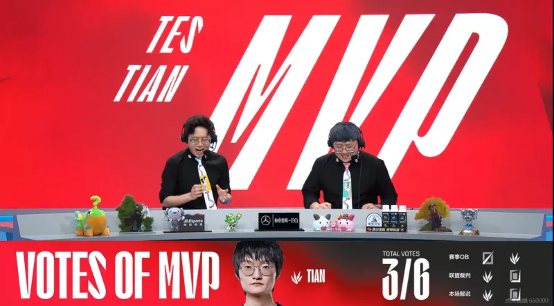 29分钟,猴子抢下大龙,正面团战一触即发,TES完成一波0换4团战,一波终结比赛。