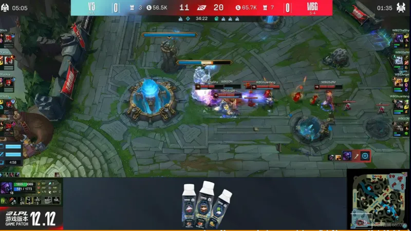 22分钟,小龙团战一触即发,破败之王完成残局收割,WBG完成一波1换4团战。