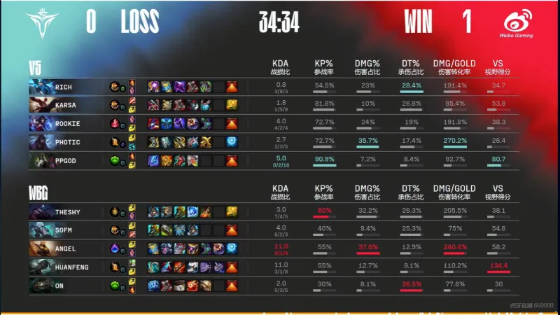 WBG选用:TheShy武器大师、SofM破败之王、Angel沙皇、huanfeng赛娜、ON塔姆