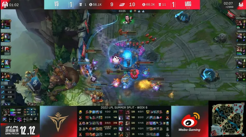 32分钟,WBG三龙汇持续推进,正面团战V5不堪一击,WBG长驱直入一波终结比赛。