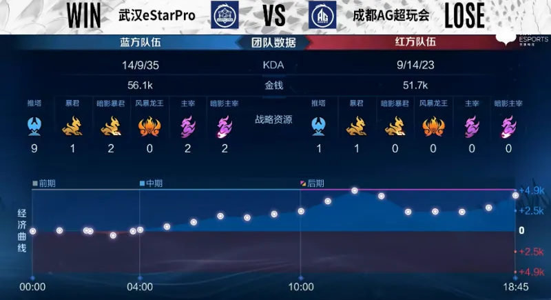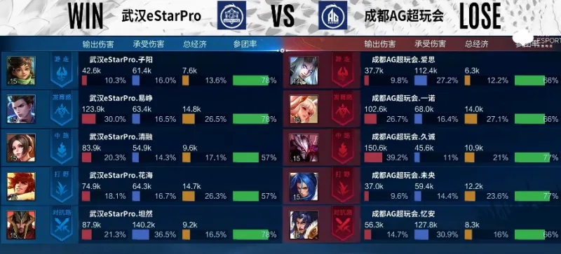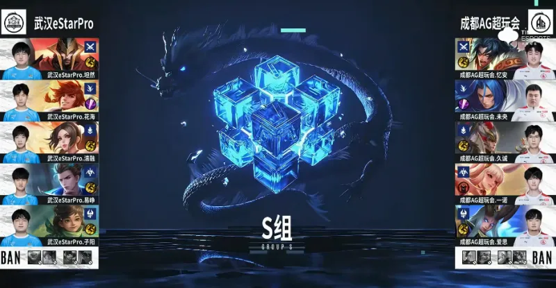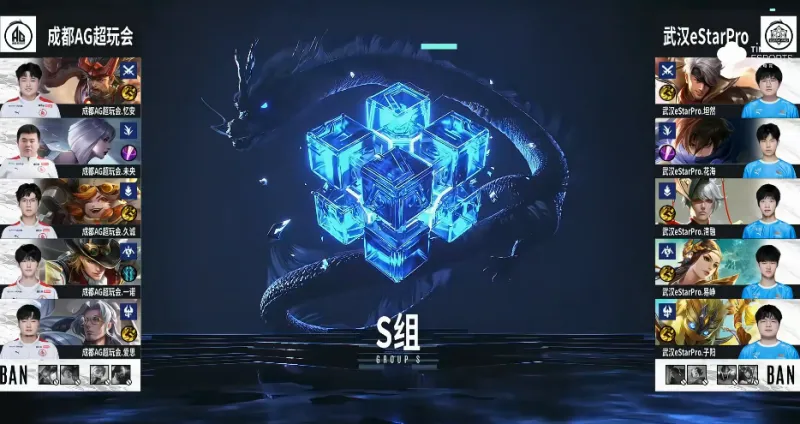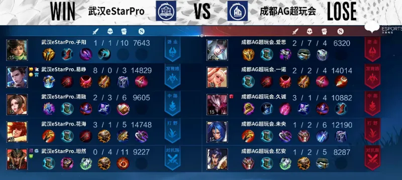 Game1:武汉eStarPro蓝色方,成都AG超玩会红色方