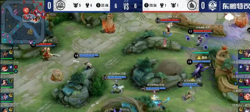 4分57秒,eStar多人入侵红buff野区,AG多人集火成功收割子阳鬼谷子